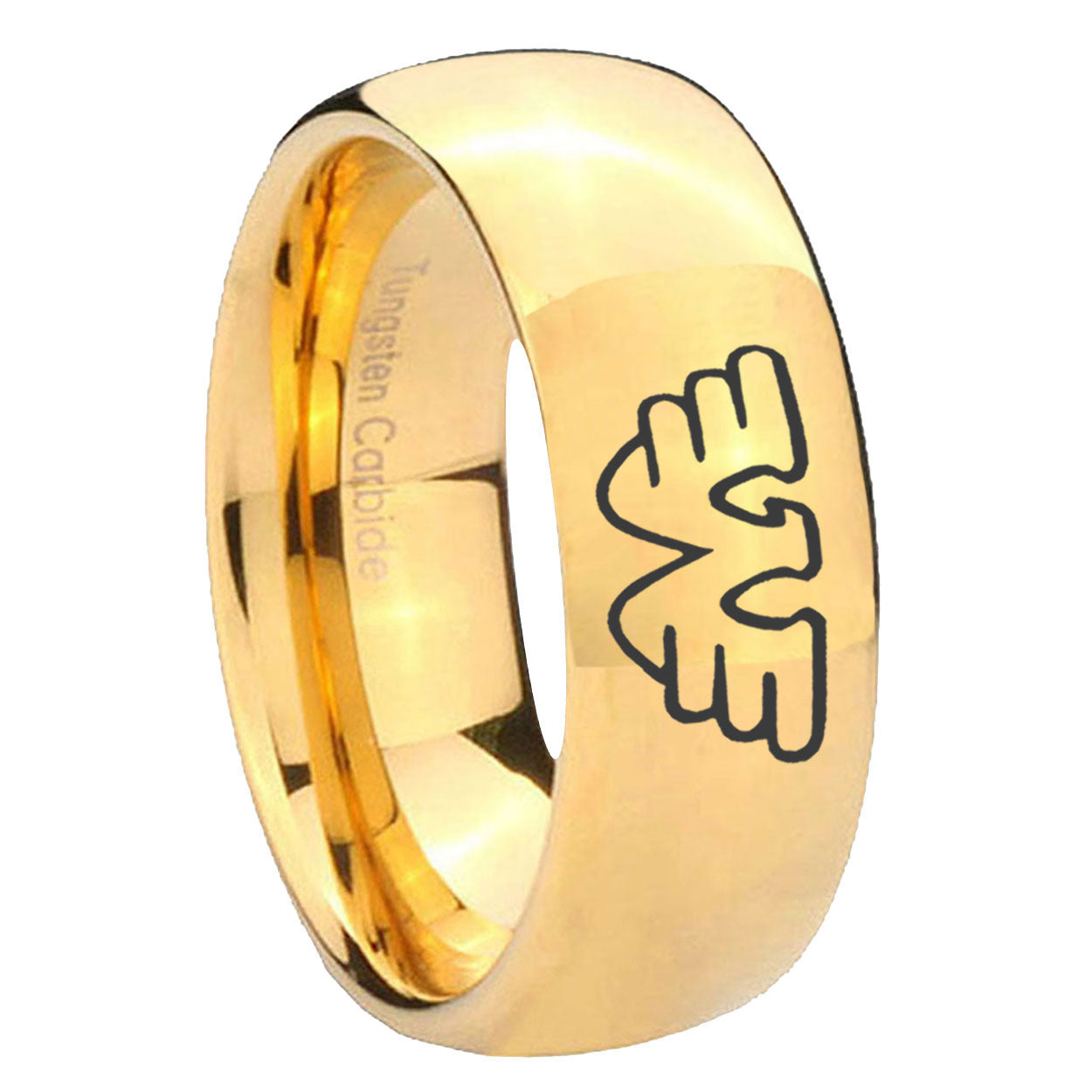 10mm Waylon Jennings Dome Gold Tungsten Carbide Personalized Ring
