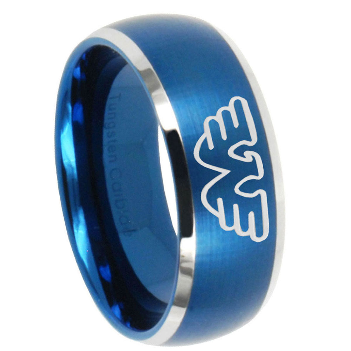 Propose with the 10mm Waylon Jennings Dome Brushed Blue 2 Tone Tungsten Men's Engagement Ring. This blue and black 2-tone dome ring with Waylon Jennings design is ideal for engagements.