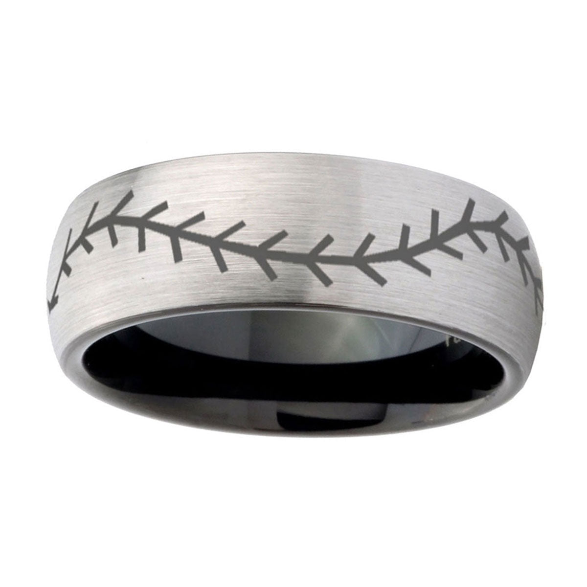 Introuding 6, 8mm Baseball Dome Tungsten Carbide Silver Black Personalized Ring . Offer in both 5mm and 8mm band width silver and black plated finished from size 4 to 14