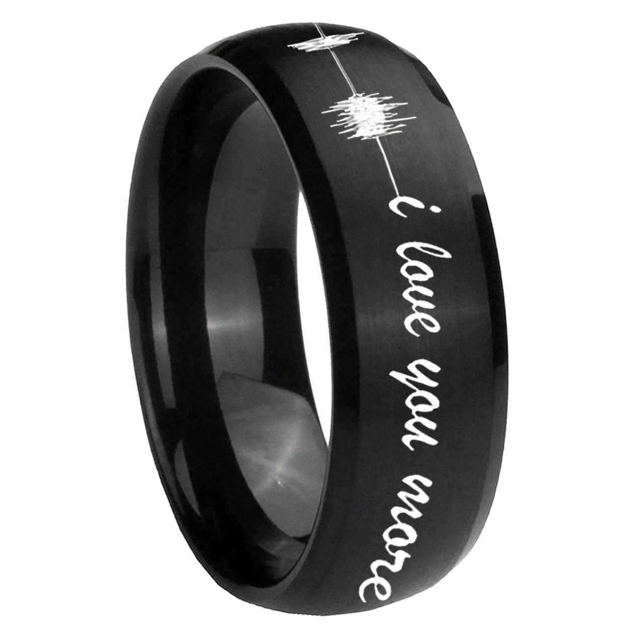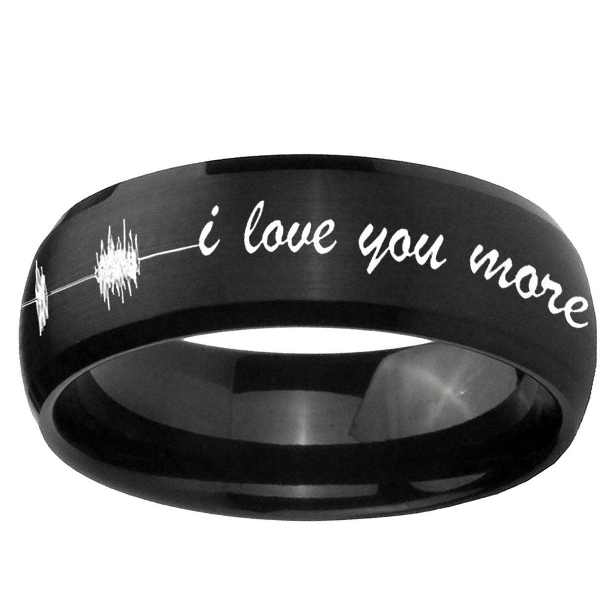 10mm Sound Wave, I love you more Dome Brush Black Tungsten Carbide Promise Ring