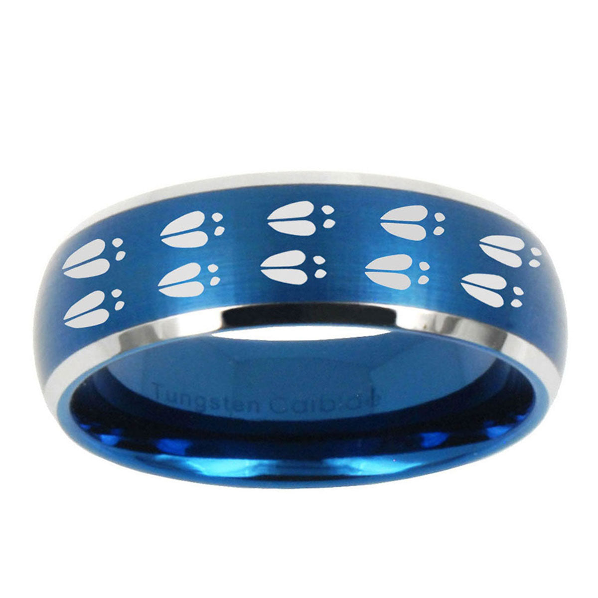 10mm Deer Tracks Dome Brushed Blue 2 Tone Tungsten Carbide Personalized Ring