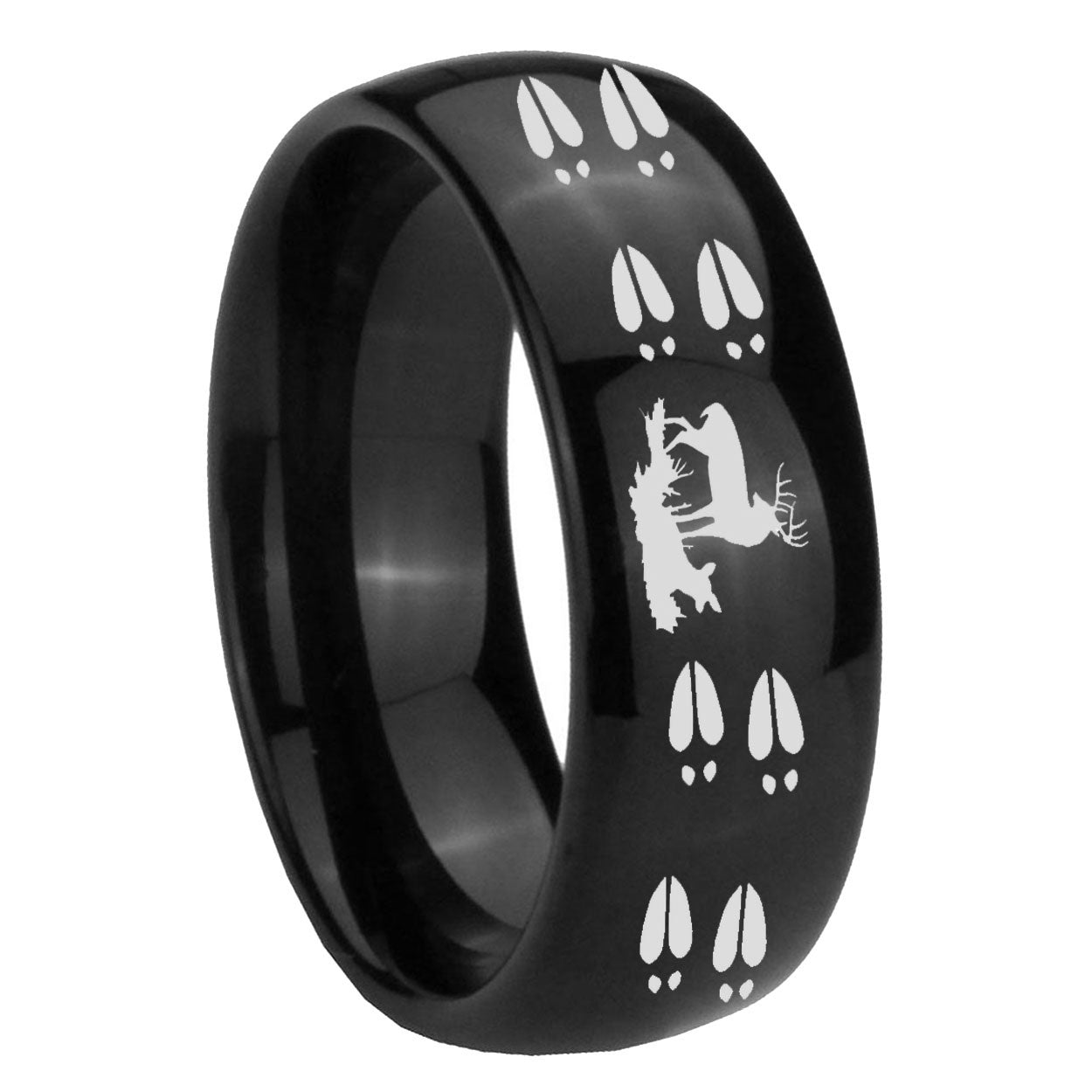 10mm Deer Hunting Tracks Dome Black Tungsten Carbide Personalized Ring