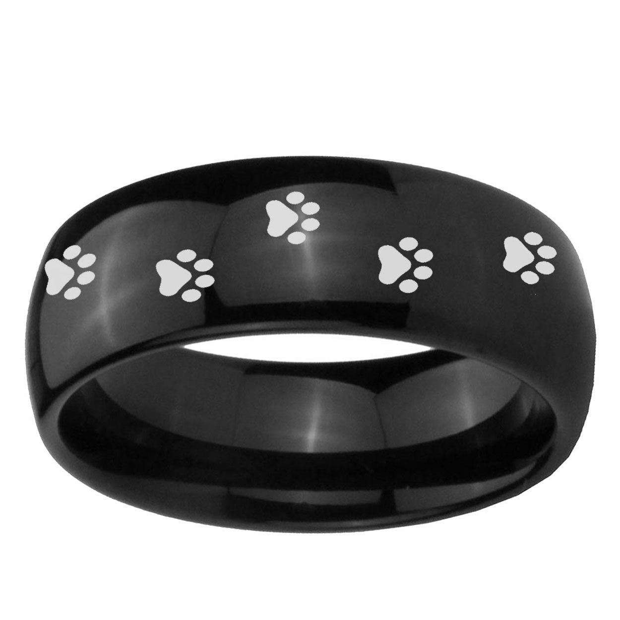 Celebrate with the 10mm Paw Print Dome Black Tungsten Carbide Men's Wedding Band. This dome-shaped black tungsten ring with Paw Print design is perfect for weddings.