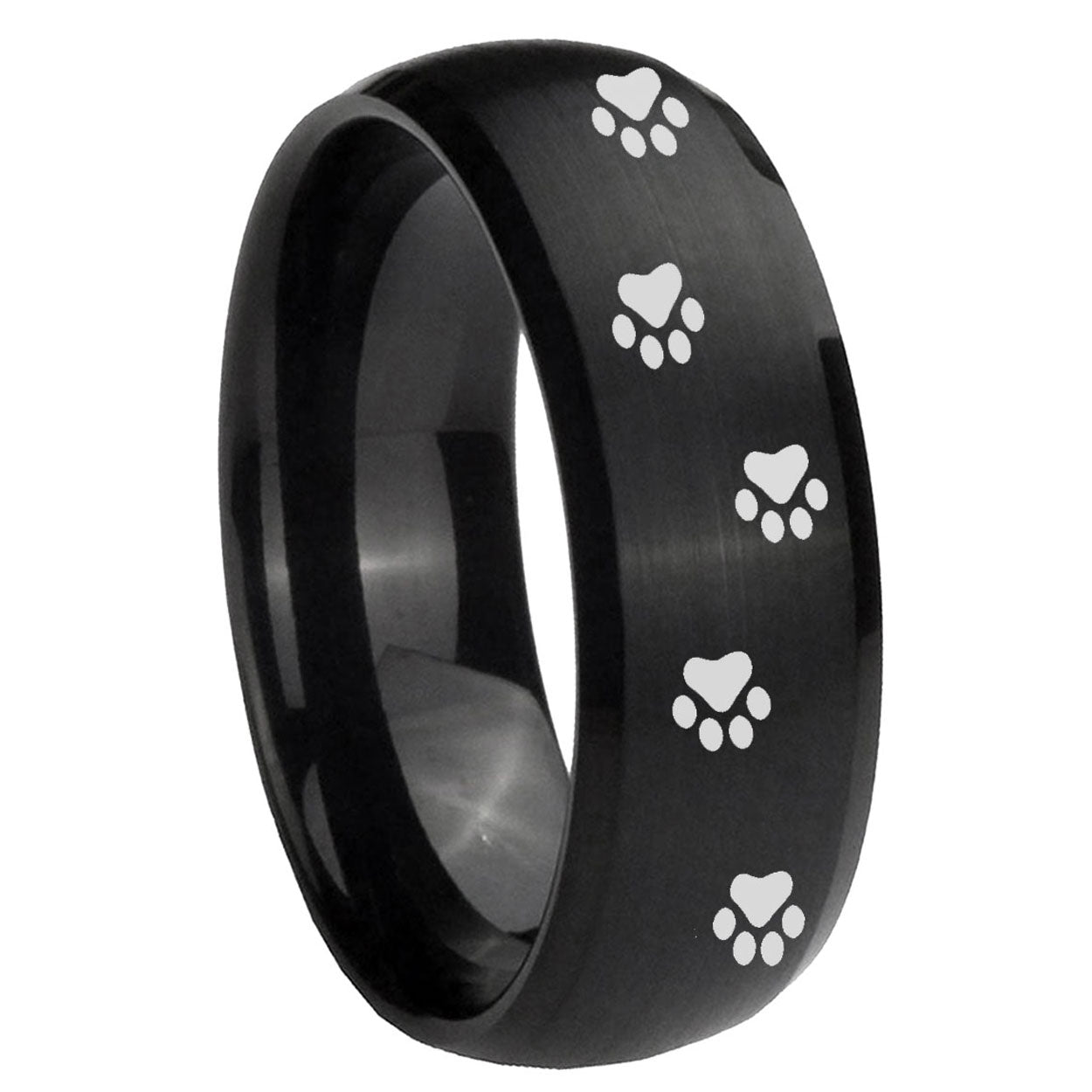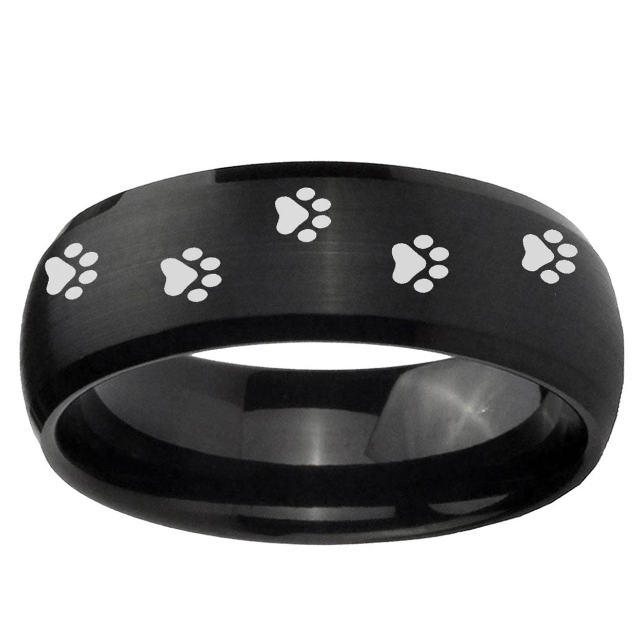 Intruding 5, 8mm Paw Print Dome Brush Black Tungsten Carbide Wedding Band Mens . Offer in both 5mm and 8mm band width brush black plated finished from size 4 to 14