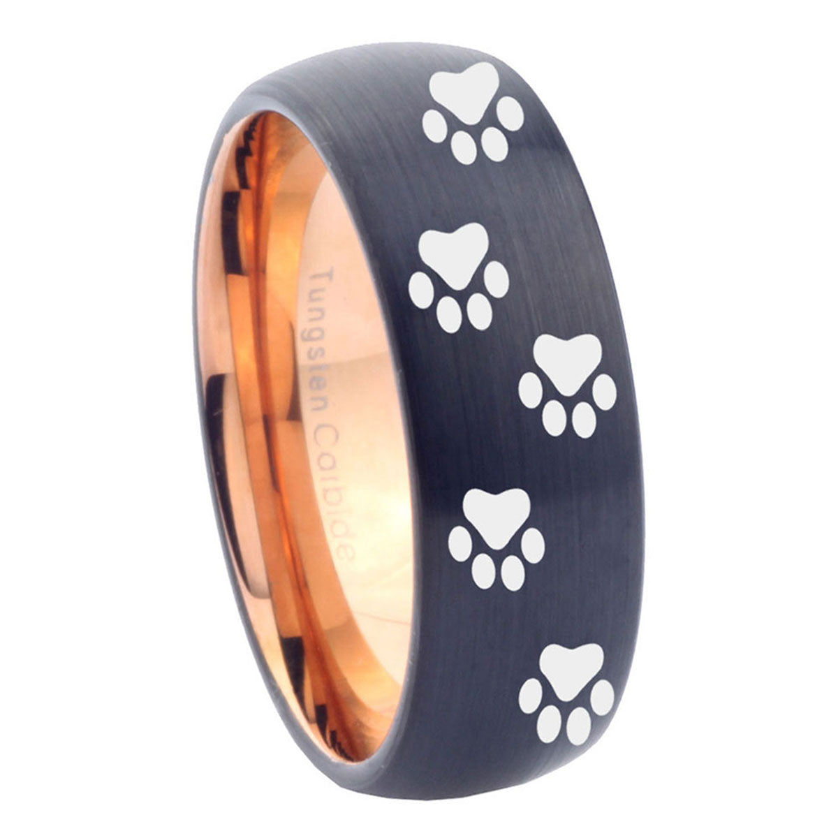 10mm Paw Print Design Dome Tungsten Carbide Rose Gold Men's Ring