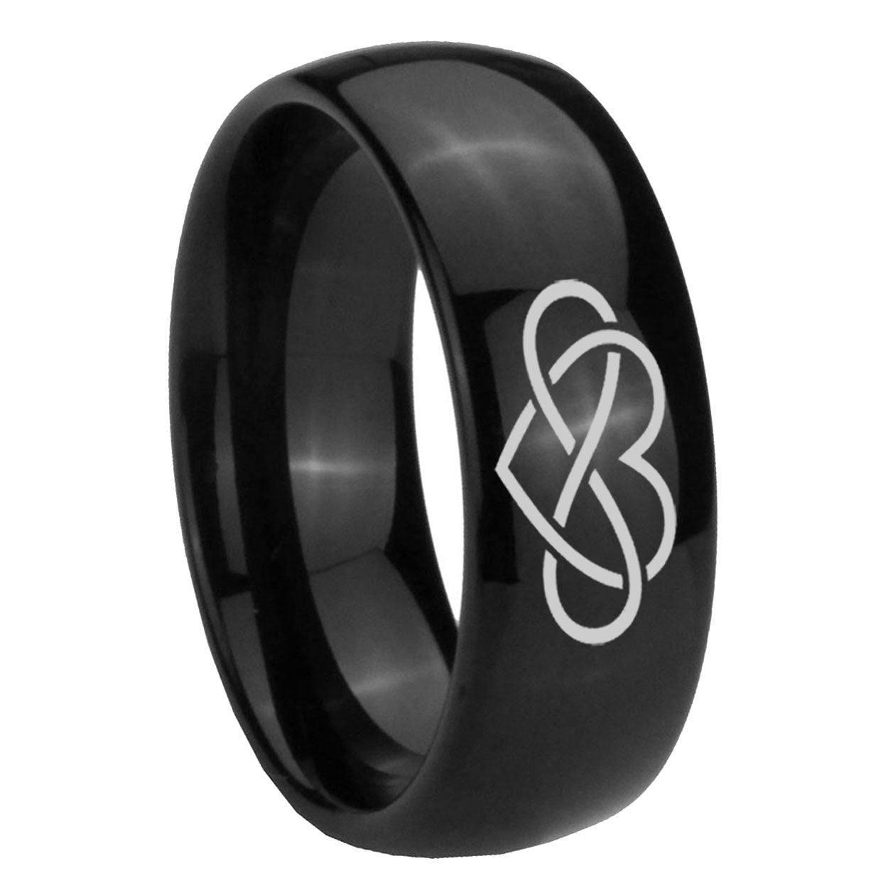 Intruding 5, 8mm Infinity Love Dome Black Tungsten Carbide Engagement Ring . Offer in both 5mm and 8mm band width polished black plated finished from size 4 to 14