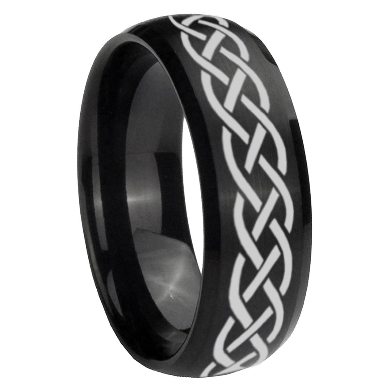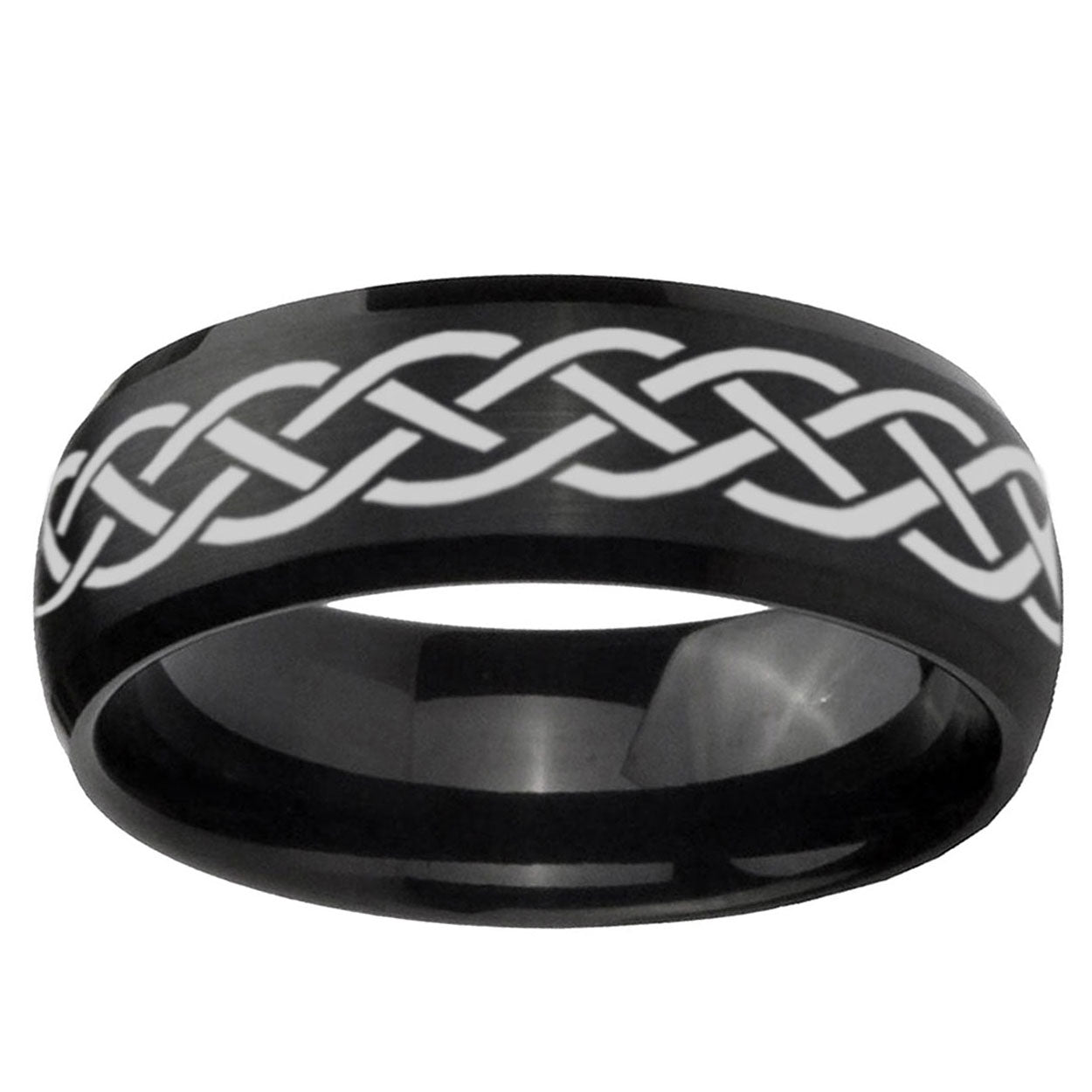 Intruding 5, 8mm Celtic Knot Dome Brush Black Tungsten Carbide Engagement Ring . Offer in both 5mm and 8mm band width brush black plated finished from size 4 to 14