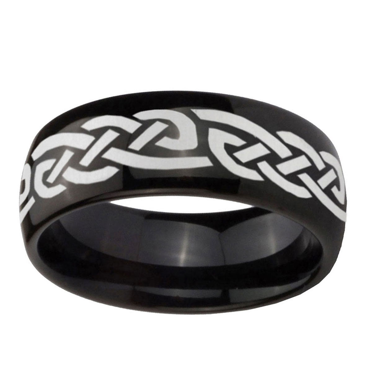 Introuding 5, 8mm Celtic Knot Infinity Love Dome Black Tungsten Carbide Mens Anniversary Ring . Offer in both 5mm and 8mm band width polished black plated fnished from size 4 to 14