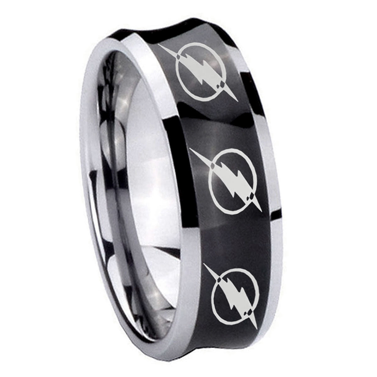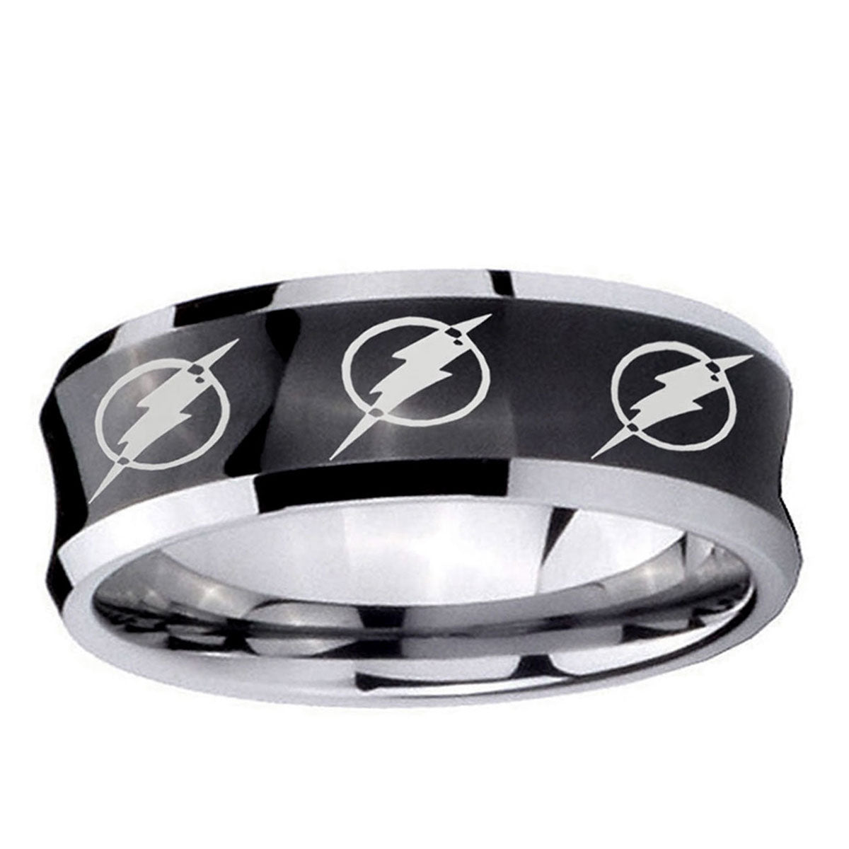 Intruding 5, 8mm Multiple Flash Concave Black Mens Tungsten Wedding Ring . Offer in both 5mm and 8mm band width black plated two tone finished from size 4 to 14