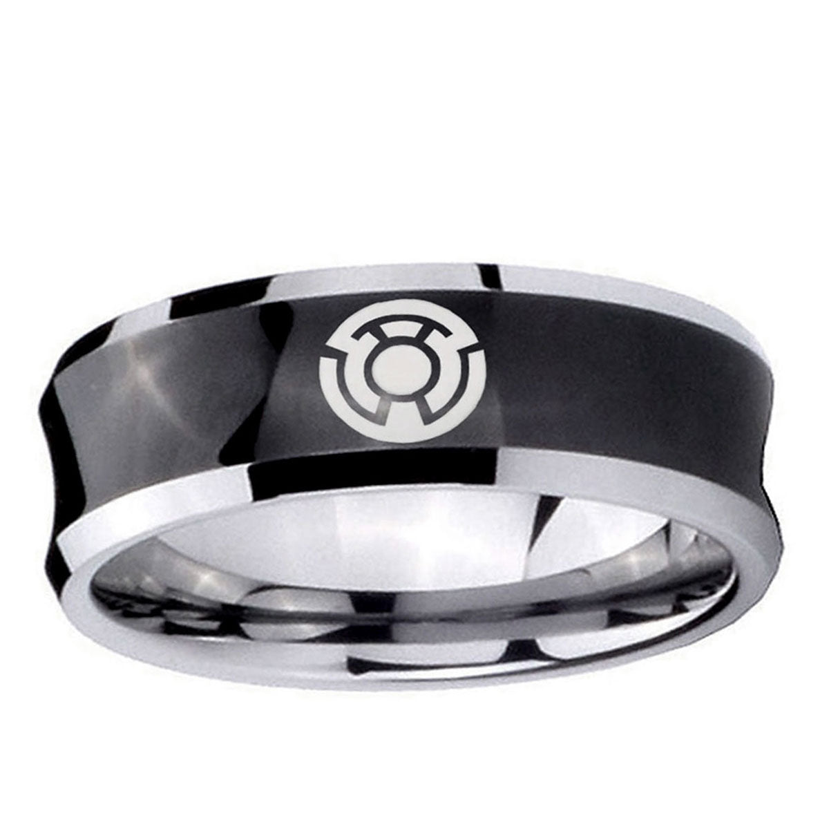 5, 8mm Yellow Lantern Concave Black Mens Unique Wedding Bands