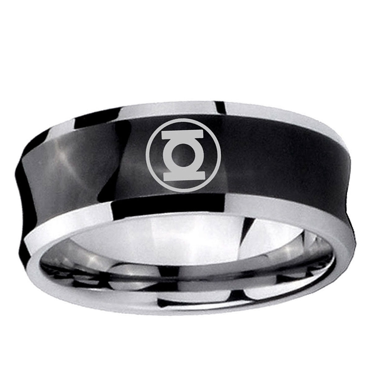 Intruding 5, 8mm Green Lantern Concave Black Mens Wide Band Rings . Offer in both 5mm and 8mm band width black plated two tone finished from size 4 to 14