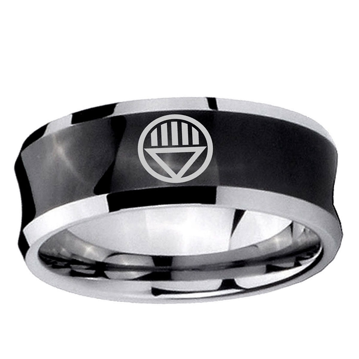 Intruding 5, 8mm Black Lantern Concave Black Mens Wedding Bands Carbon Fiber . Offer in both 5mm and 8mm band width black plated two tone finished from size 4 to 14