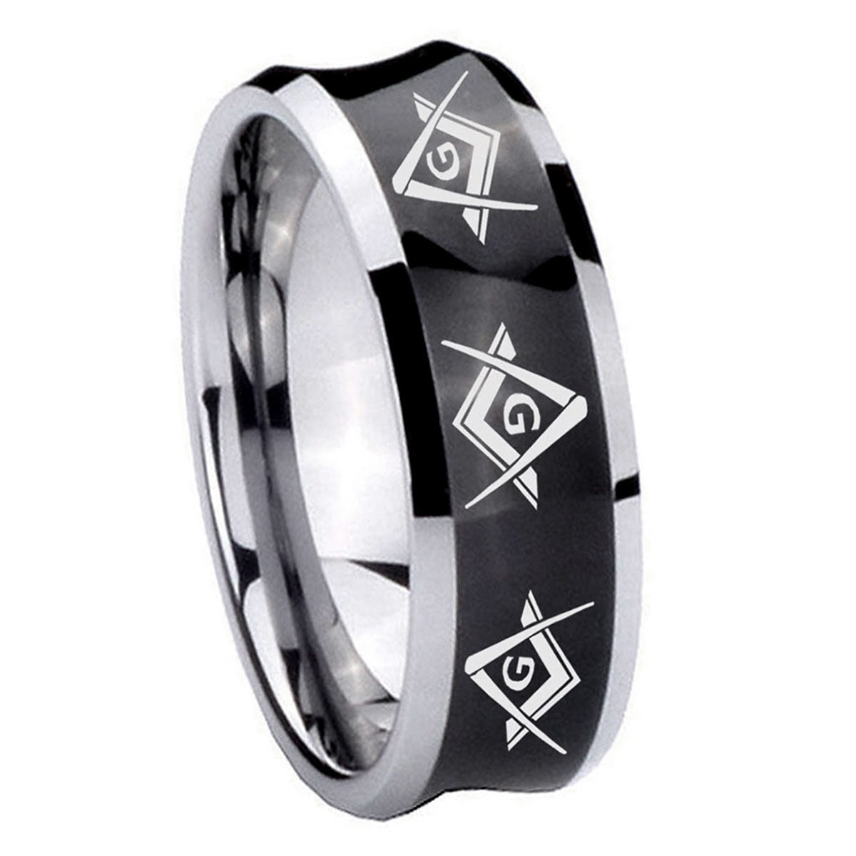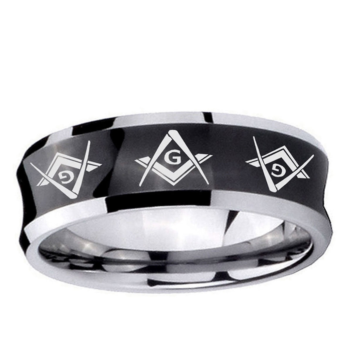 Propose with the 10mm Master Mason Masonic Concave Black Tungsten Carbide Men's Engagement Ring. This concave black tungsten ring with Master Mason Masonic design is ideal for engagements.