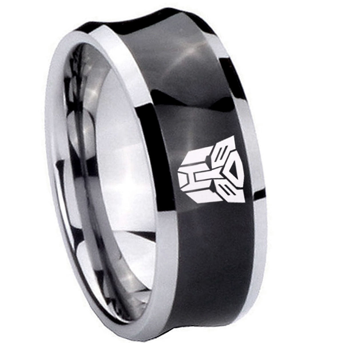 5, 8mm Transformers Autobot Concave Black Tungsten Carbide Custom Mens Ring