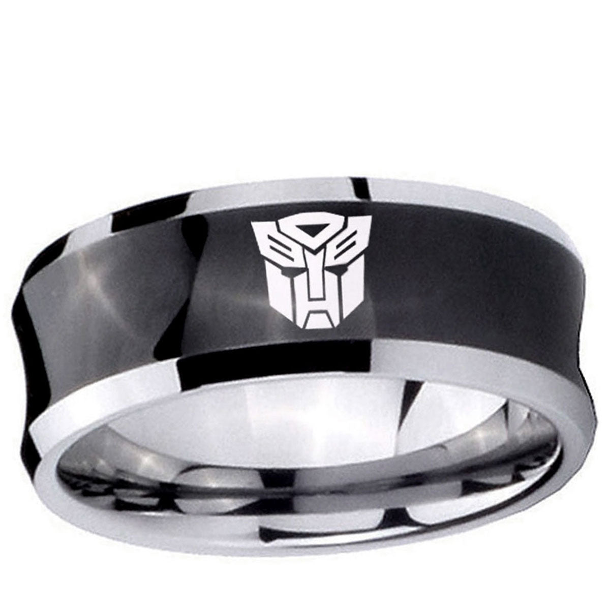 Intruding 5, 8mm Transformers Autobot Concave Black Tungsten Carbide Custom Mens Ring . Offer in both 5mm and 8mm band width black plated two tone finished from size 4 to 14