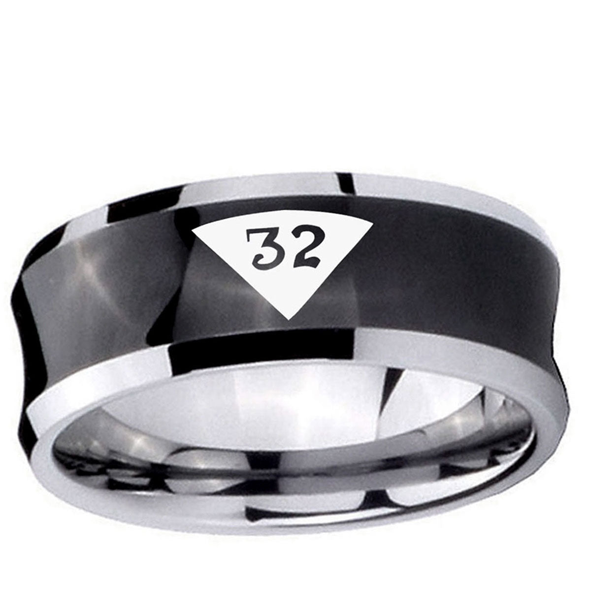 Intruding 5, 8mm Masonic 32 Triangle Design Freemason Concave Black Tungsten Carbide Mens Ring Engraved . Offer in both 5mm and 8mm band width black plated two tone finished from size 4 to 14