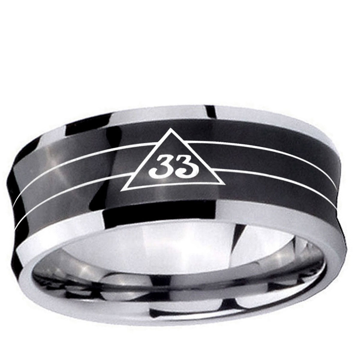 Intruding 5, 8mm Masonic 32 Duo Line Freemason Concave Black Tungsten Carbide Mens Ring Engraved . Offer in both 5mm and 8mm band width black plated two tone finished from size 4 to 14
