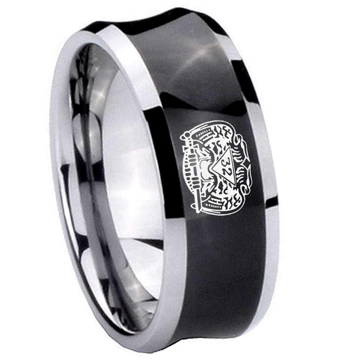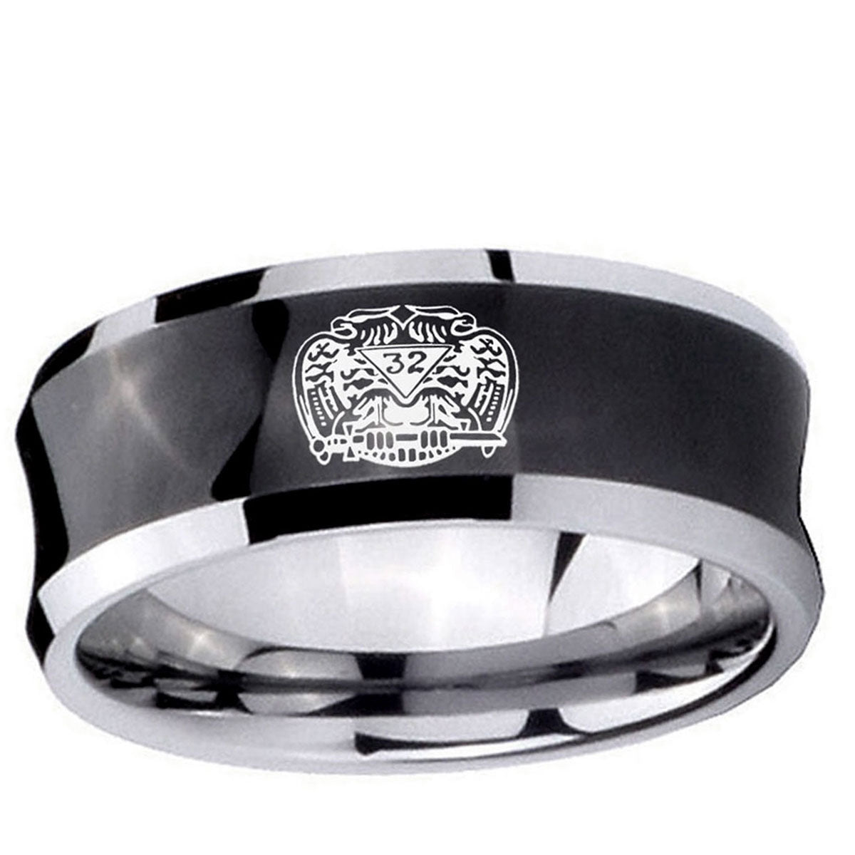 Intruding 5, 8mm Masonic 32 Degree Freemason Concave Black Tungsten Carbide Mens Ring Engraved . Offer in both 5mm and 8mm band width black plated two tone finished from size 4 to 14