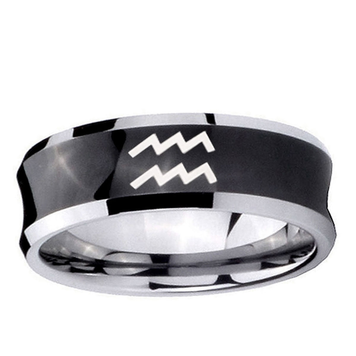 Intruding 5, 8mm Aquarius Horoscope Concave Black Tungsten Carbide Mens Engagement Band . Offer in both 5mm and 8mm band width black plated two tone finished from size 4 to 14