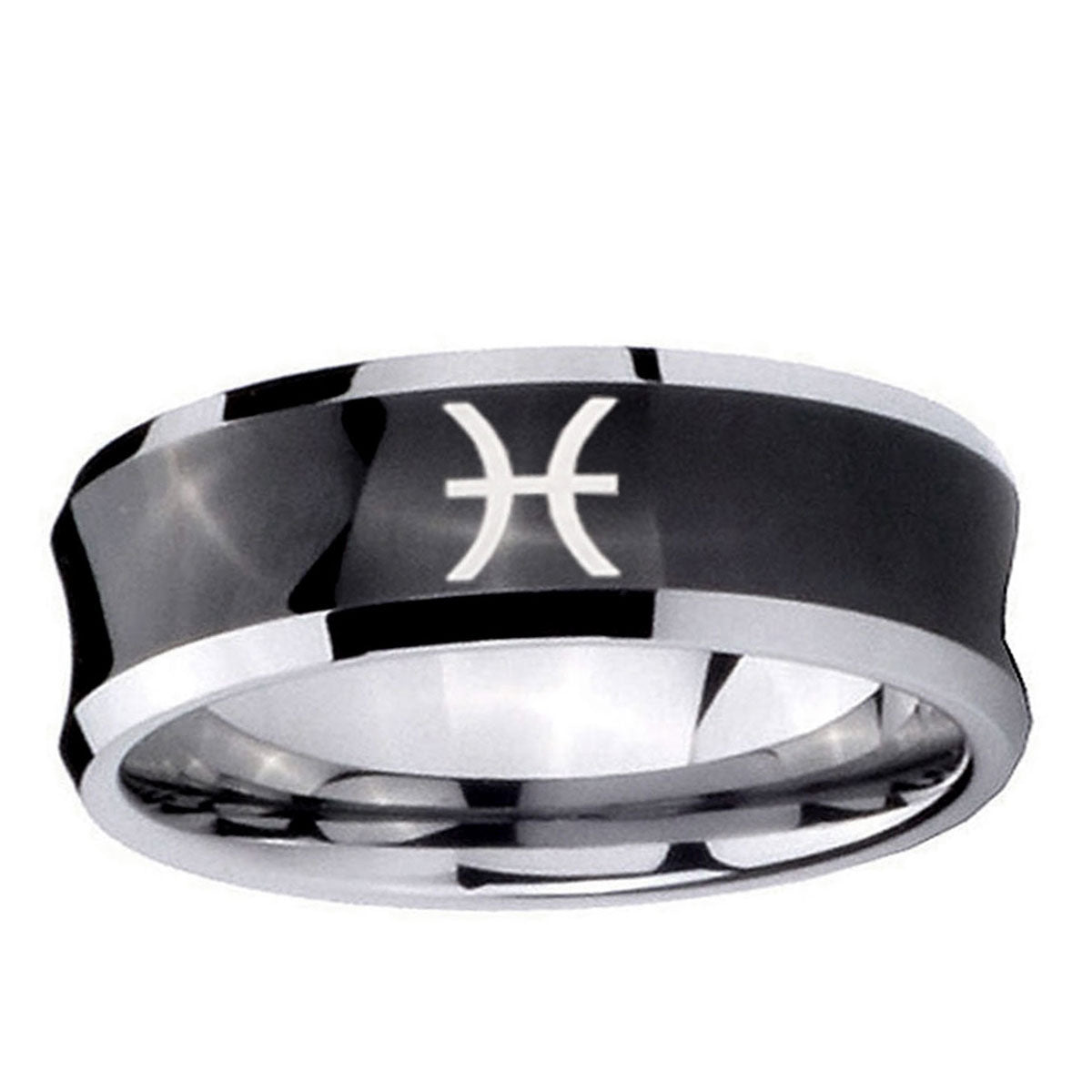 10mm Pisces Zodiac Concave Black Tungsten Carbide Promise Ring