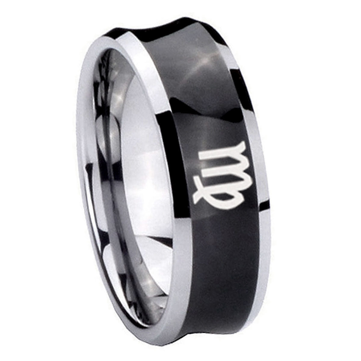Intruding 5, 8mm Virgo Zodiac Concave Black Tungsten Carbide Men's Wedding Band . Offer in both 5mm and 8mm band width black plated two tone finished from size 4 to 14