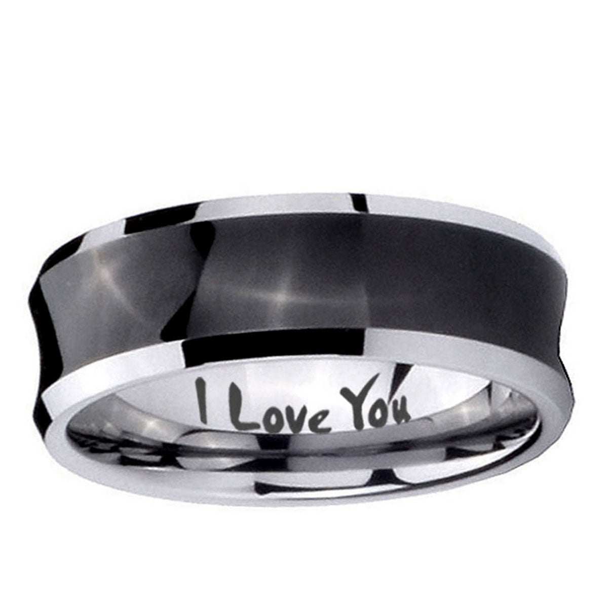 Celebrate with the 10mm I Love You Concave Black Tungsten Carbide Men's Wedding Ring. This concave black tungsten ring with I Love You design is perfect for weddings.