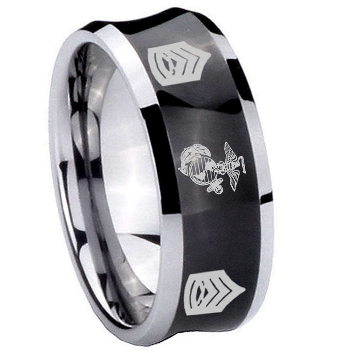 Intruding 5, 8mm Marine Army Sergeant Concave Black Tungsten Carbide Engagement Ring . Offer in both 5mm and 8mm band width black plated two tone finished from size 4 to 14