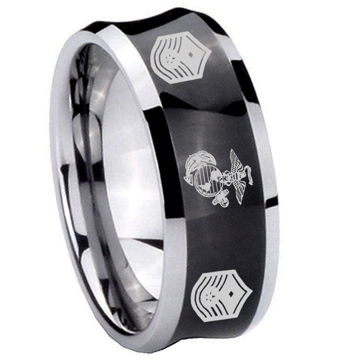 Intruding 5, 8mm Marine Chief Master Sergeant Concave Black Tungsten Carbide Engraved Ring . Offer in both 5mm and 8mm band width black plated two tone finished from size 4 to 14