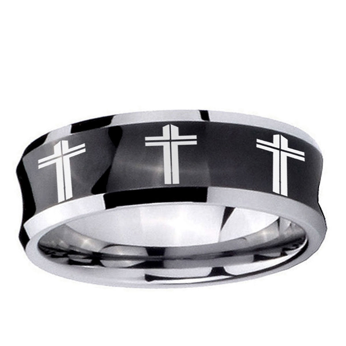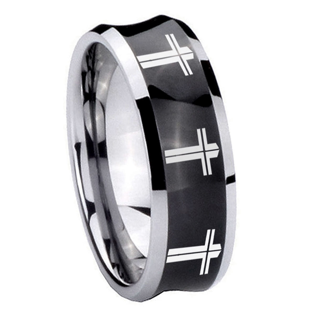 10mm Multiple Christian Cross Concave Black Tungsten Carbide Wedding Bands Ring