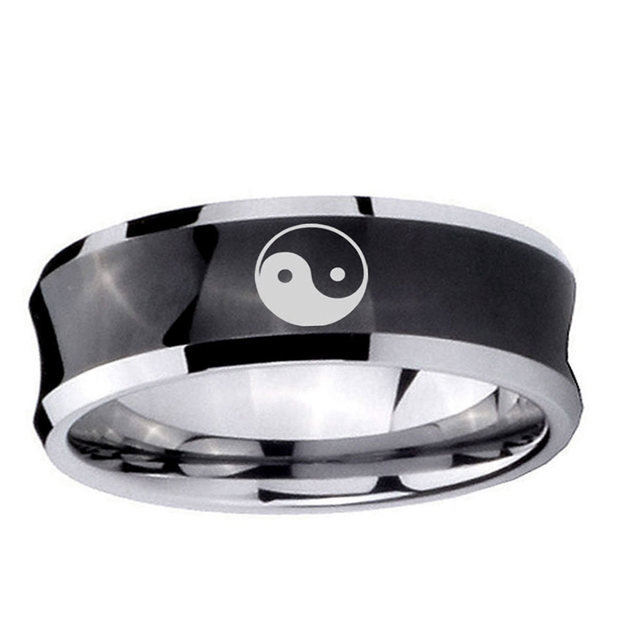 Intruding 5, 8mm Yin Yang Concave Black Tungsten Carbide Wedding Band Mens . Offer in both 5mm and 8mm band width black plated two tone finished from size 4 to 14