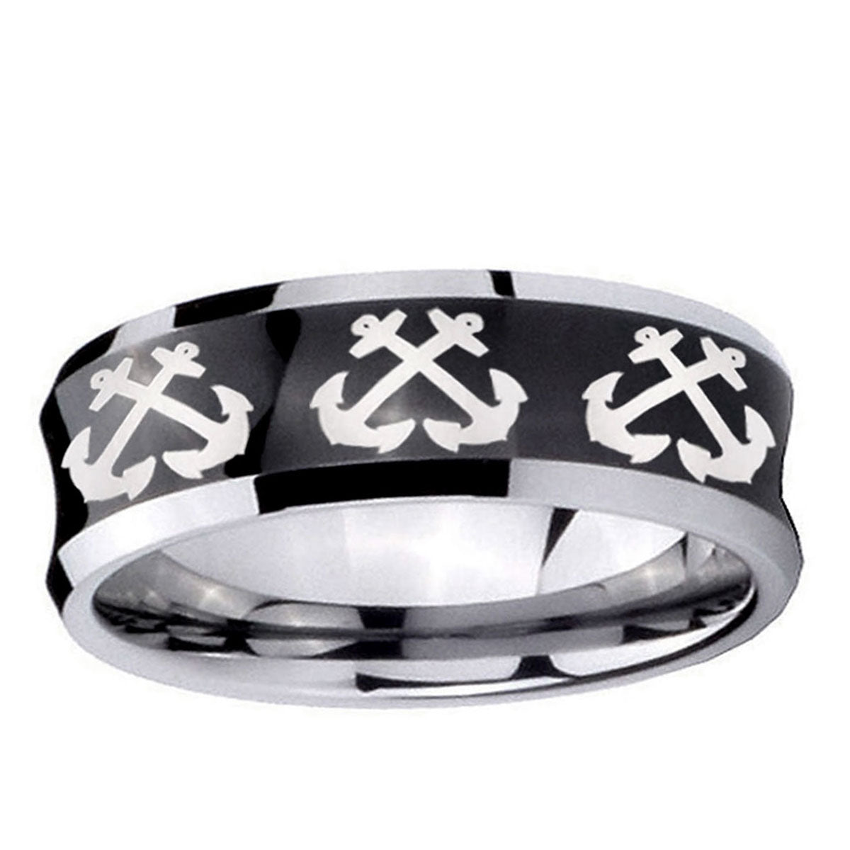 5, 8mm Multiple Anchor Concave Black Tungsten Carbide Anniversary Ring
