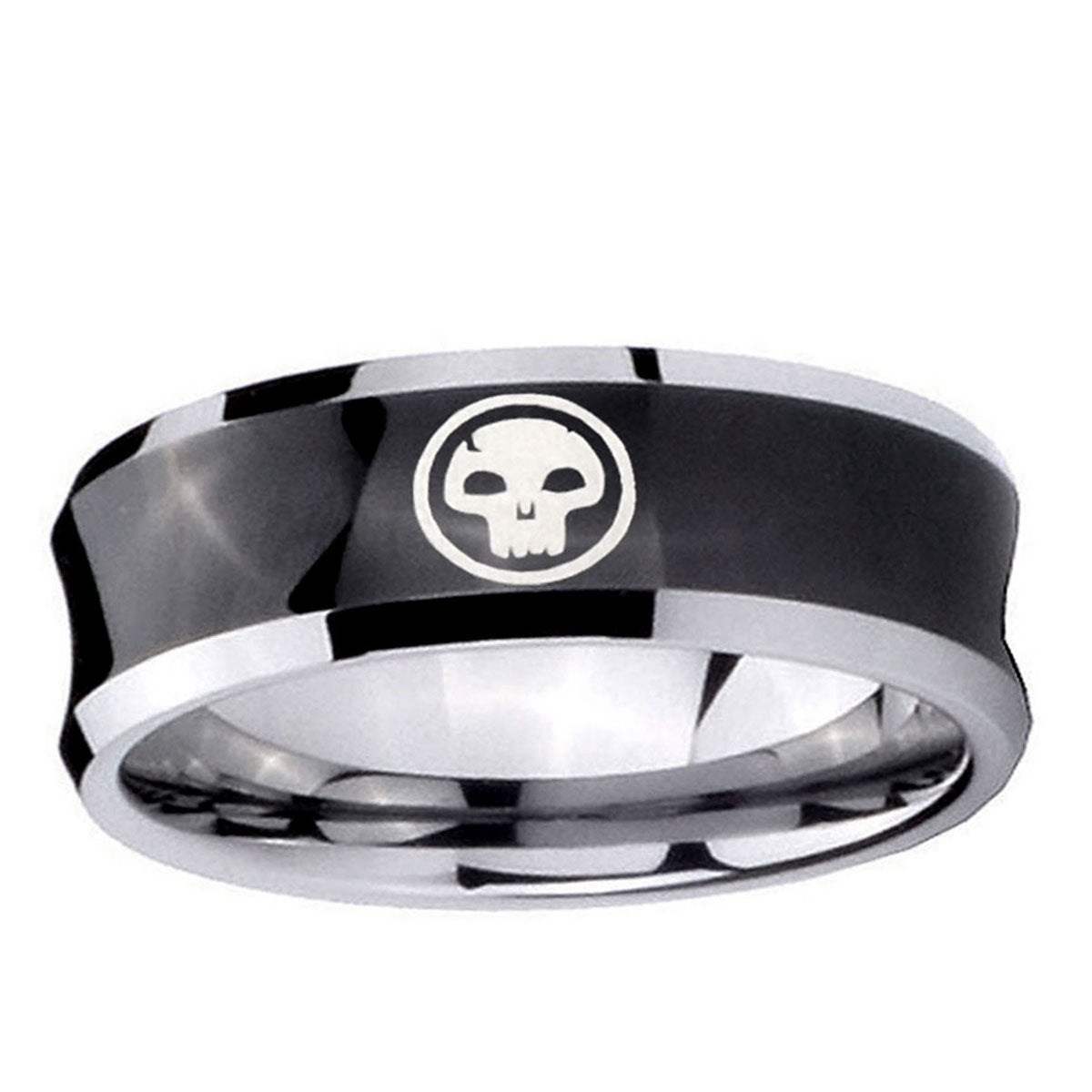 Propose with the 10mm Skull Concave Black Tungsten Carbide Mens Engagement Band. This concave black tungsten ring with Skull design is ideal for engagements.