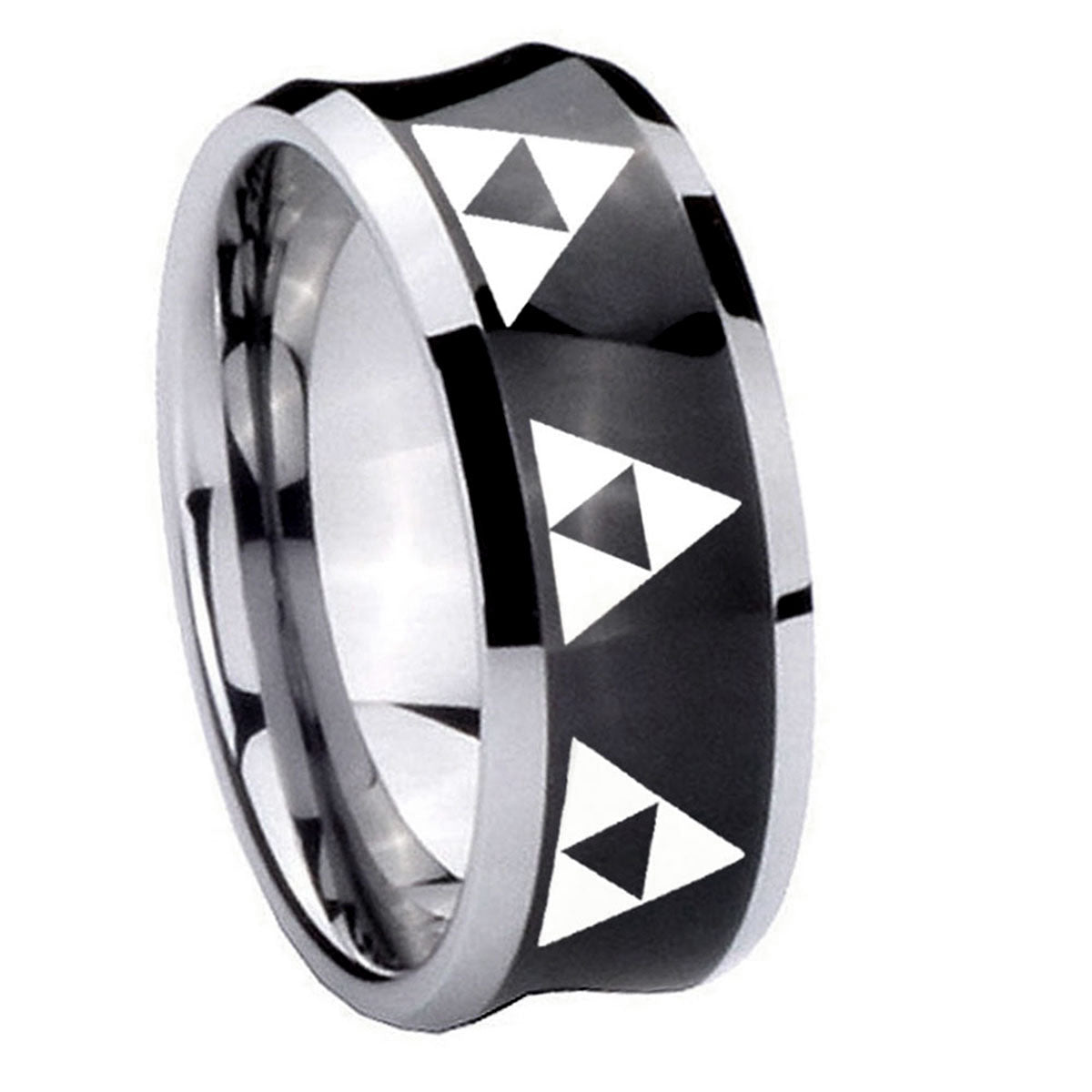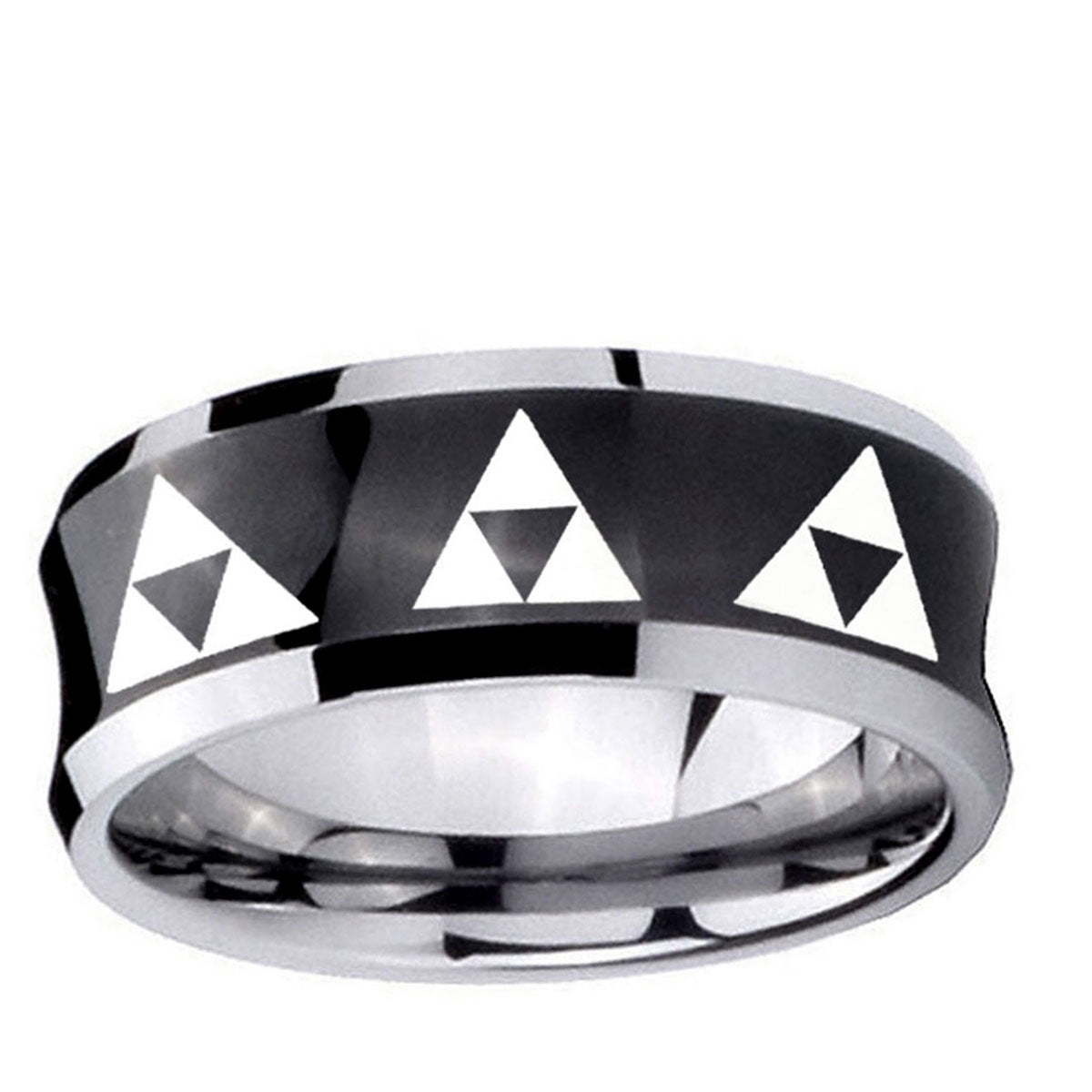 10mm Multiple Zelda Triforce Concave Black Tungsten Carbide Custom Mens Ring