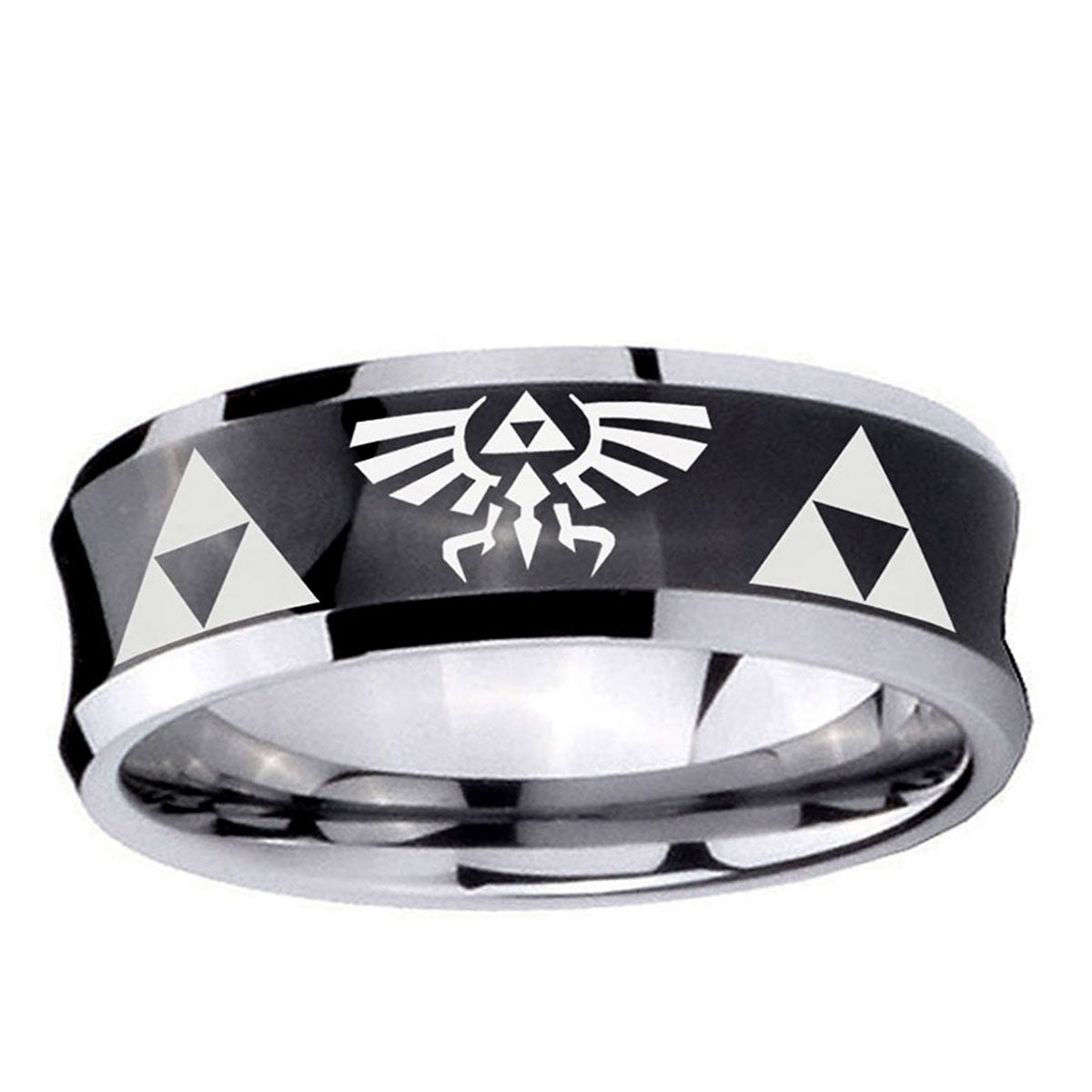 Intruding 5, 8mm Legend of Zelda Concave Black Tungsten Carbide Mens Ring Personalized . Offer in both 5mm and 8mm band width black plated two tone finished from size 4 to 14