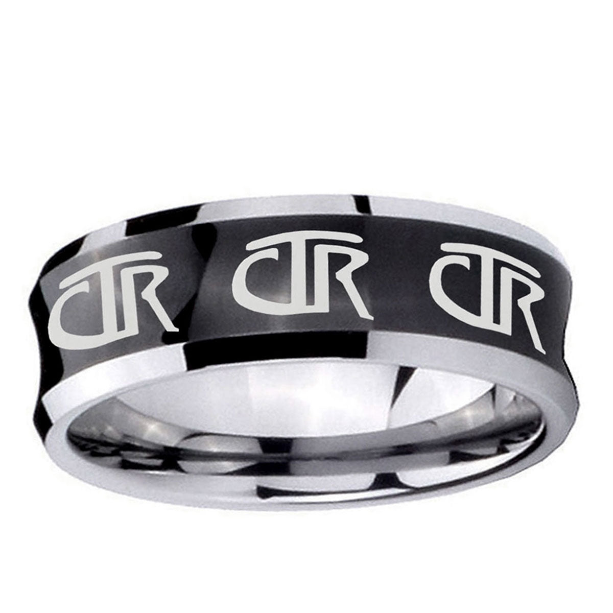 Personalize the 10mm Multiple CTR Concave Black Tungsten Carbide Engraved Ring. This concave black tungsten ring with Multiple CTR design is perfect for custom engravings.
