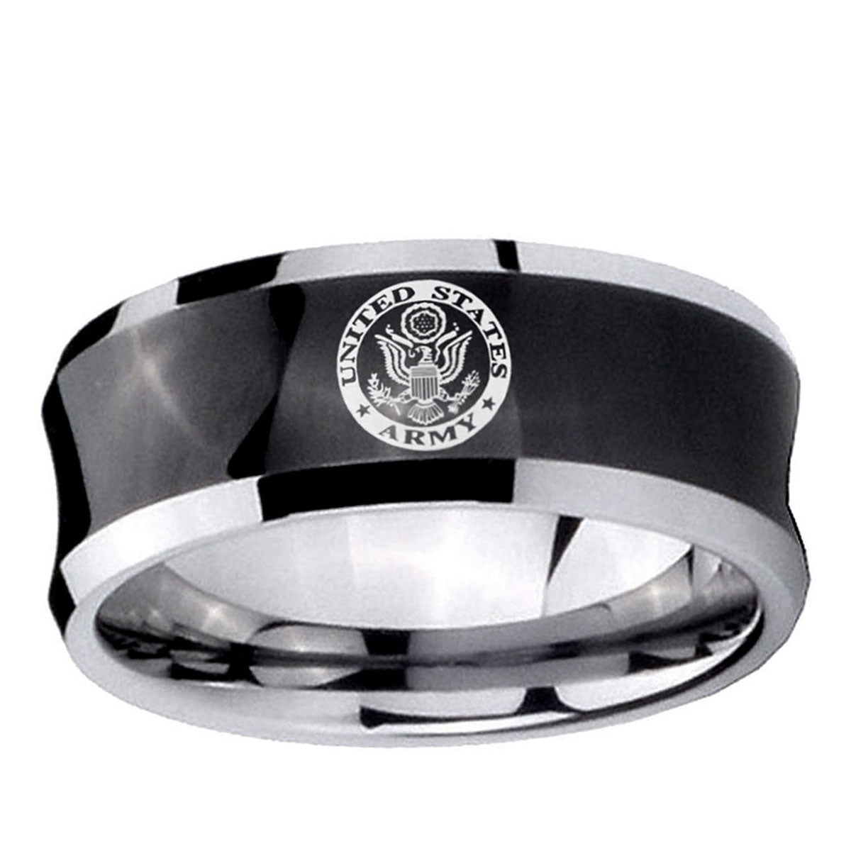 5, 8mm U.S. Army Concave Black Tungsten Carbide Custom Ring for Men