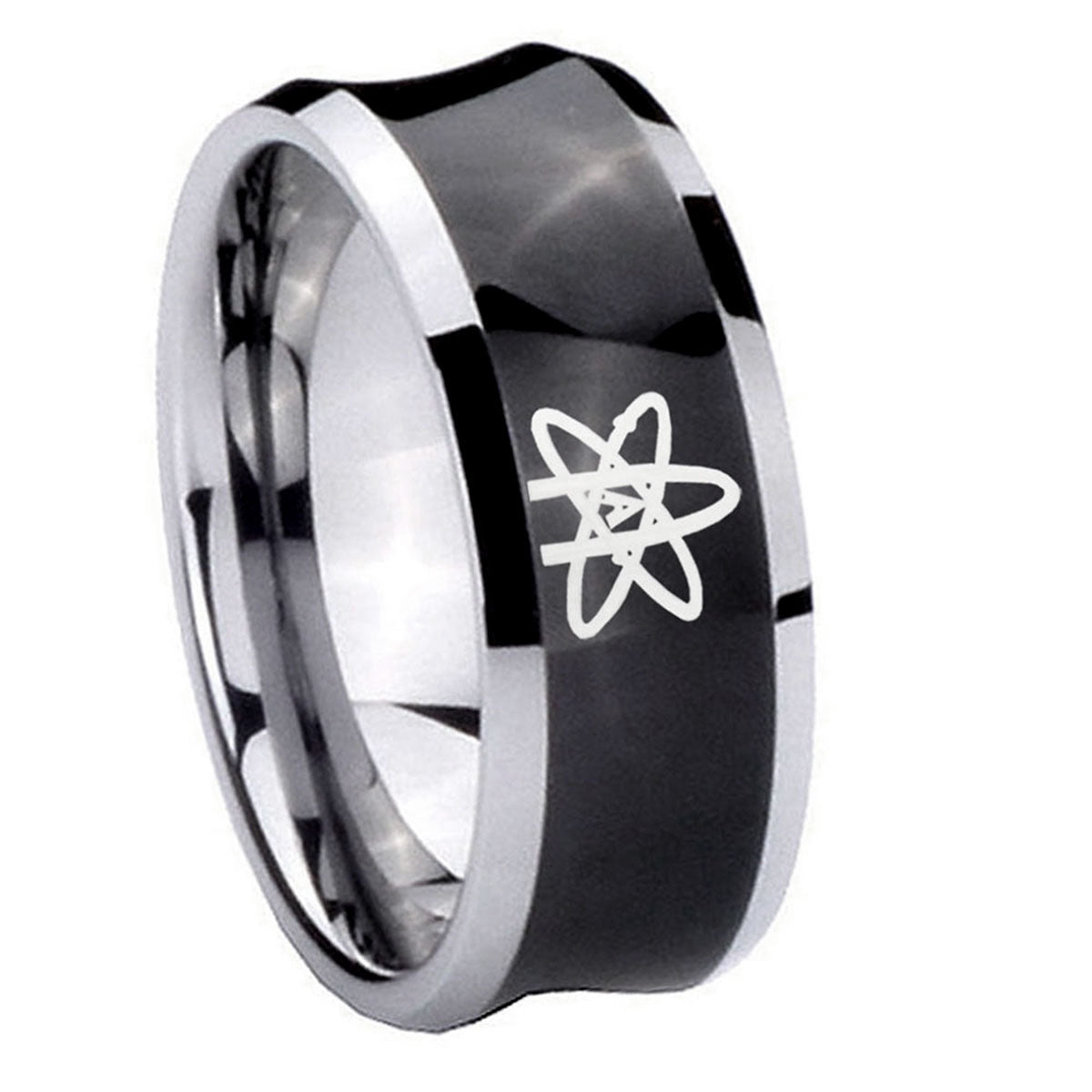 10mm American Atheist Concave Black Tungsten Carbide Men's Engagement Ring