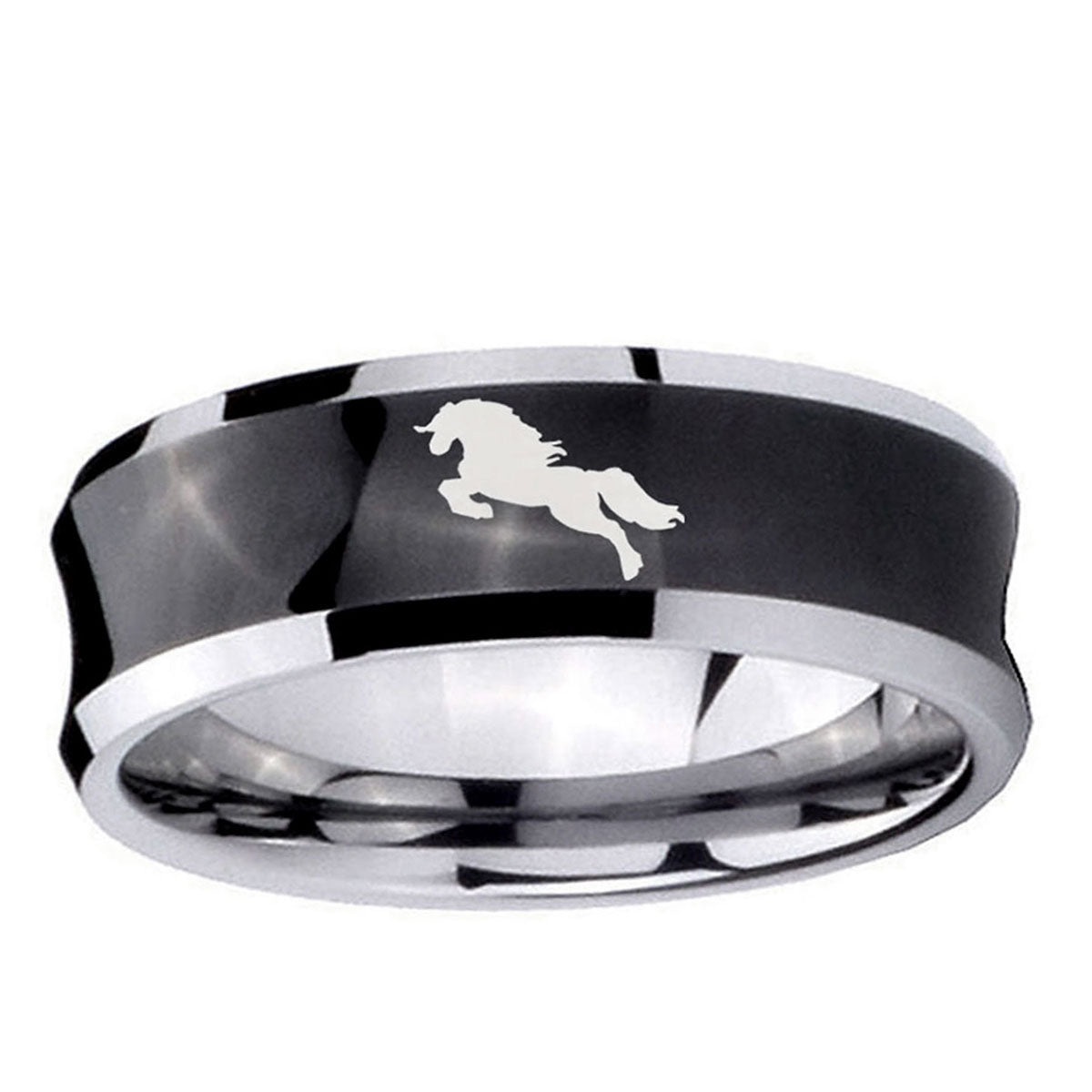 Customize the 10mm Horse Concave Black Tungsten Carbide Custom Mens Ring. This concave black tungsten ring with Horse design is perfect for personalization.