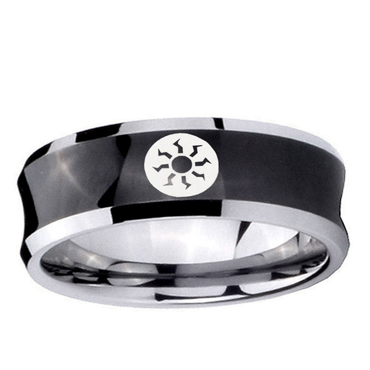 Intruding 5, 8mm Magic The Gathering Concave Black Tungsten Carbide Men's Wedding Band . Offer in both 5mm and 8mm band width black plated two tone finished from size 4 to 14