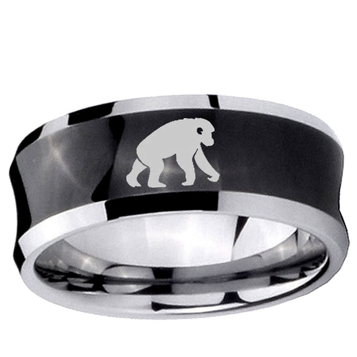 Propose with the 10mm Chimpanzee Concave Black Tungsten Carbide Men's Engagement Band. This concave black tungsten ring with chimpanzee design is ideal for engagements.