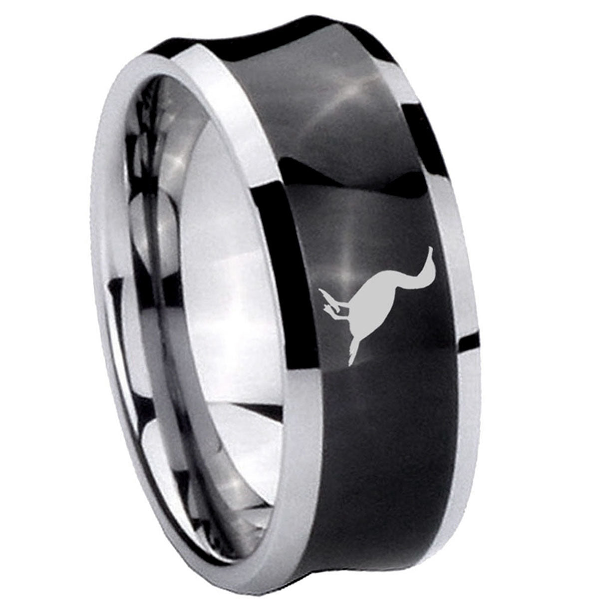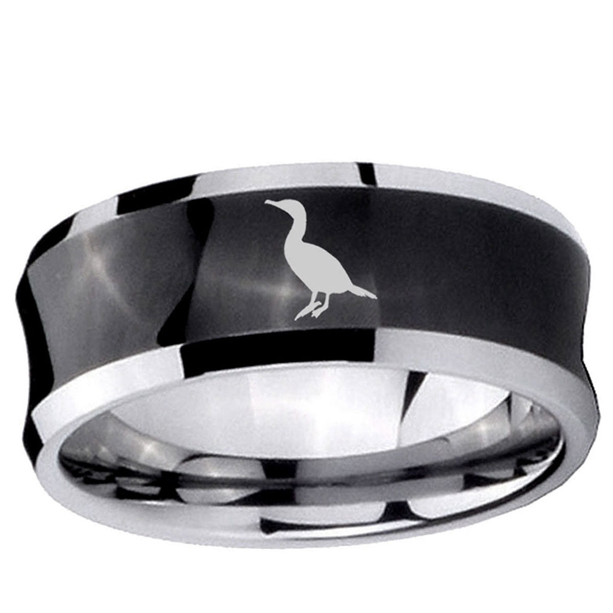 Intruding 5, 8mm Cormorant Concave Black Tungsten Carbide Men's Ring . Offer in both 5mm and 8mm band width black plated two tone finished from size 4 to 14