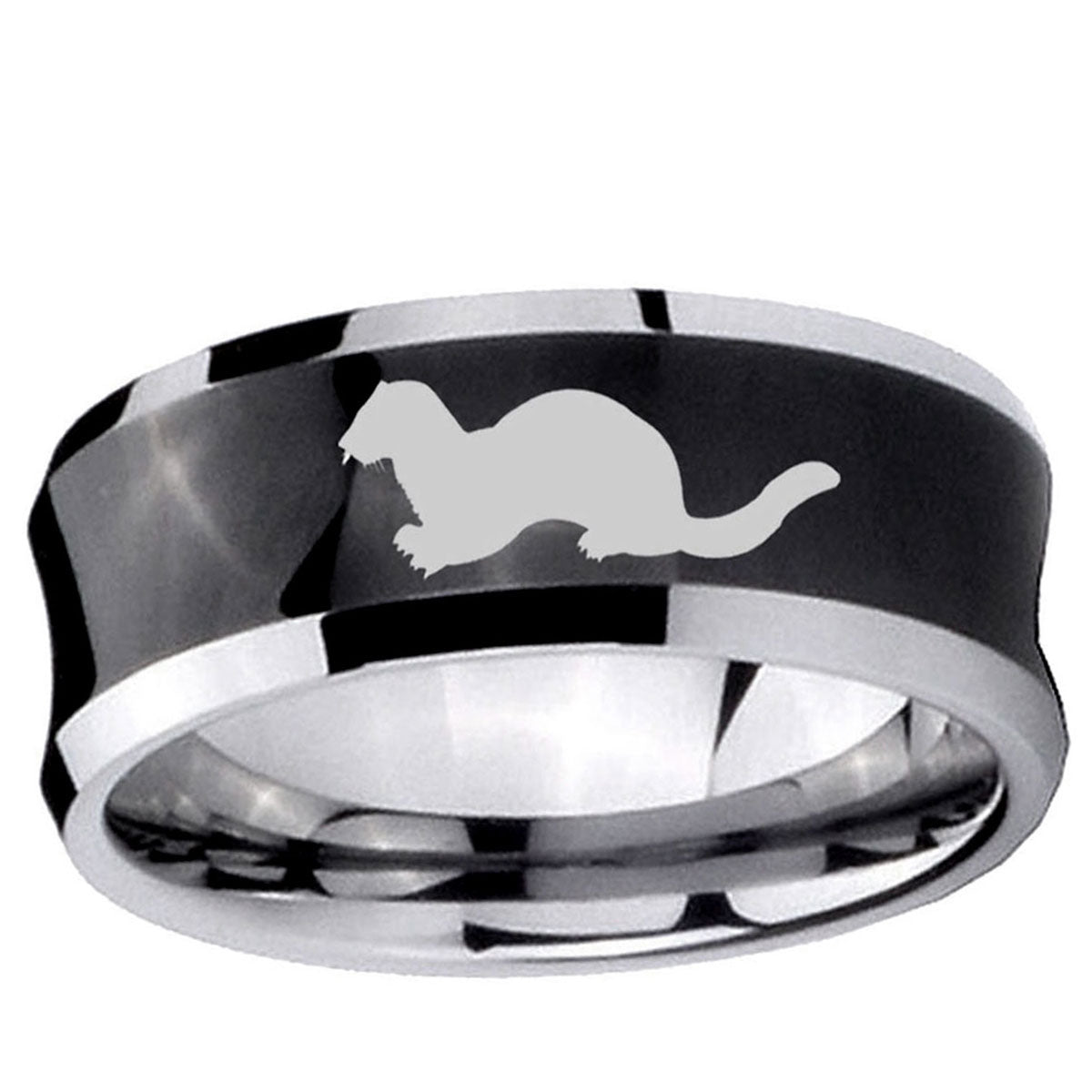 Propose with the 10mm Otter Concave Black Tungsten Carbide Men's Engagement Band. This concave black tungsten ring with Otter design is ideal for engagements.