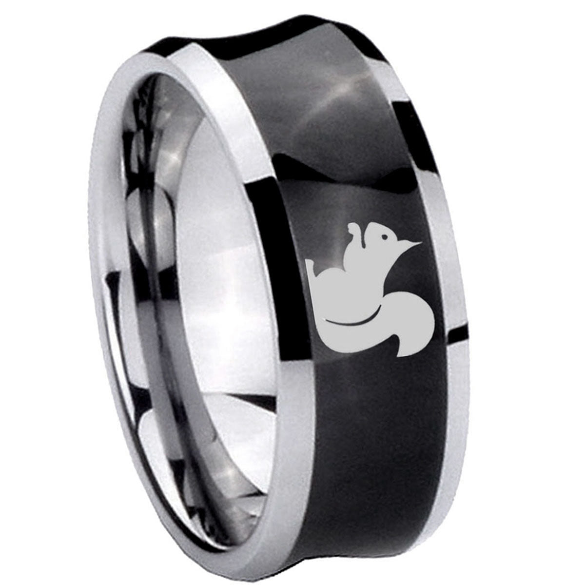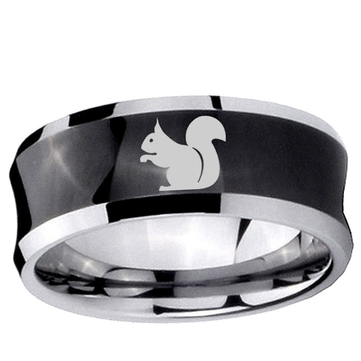 Propose with the 10mm Squirrel Concave Black Tungsten Carbide Men's Engagement Band. This concave black tungsten ring with Squirrel design is ideal for engagements.