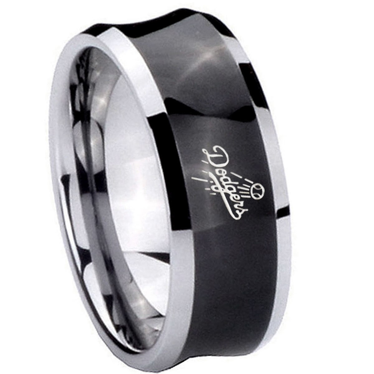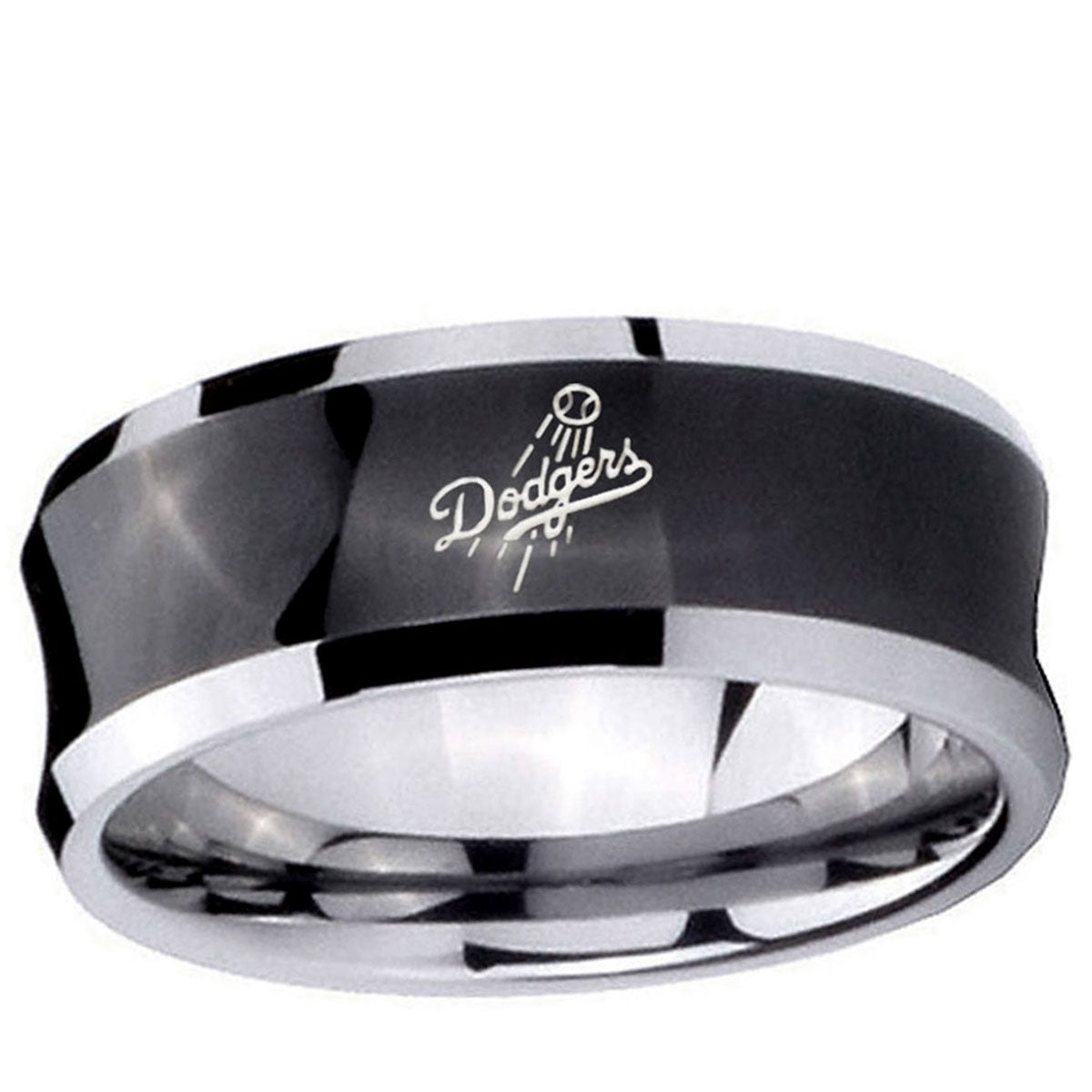 Intruding 5, 8mm LA Dogers MLB Baseball Concave Black Tungsten Carbide Men's Engagement Band . Offer in both 5mm and 8mm band width black plated two tone finished from size 4 to 14
