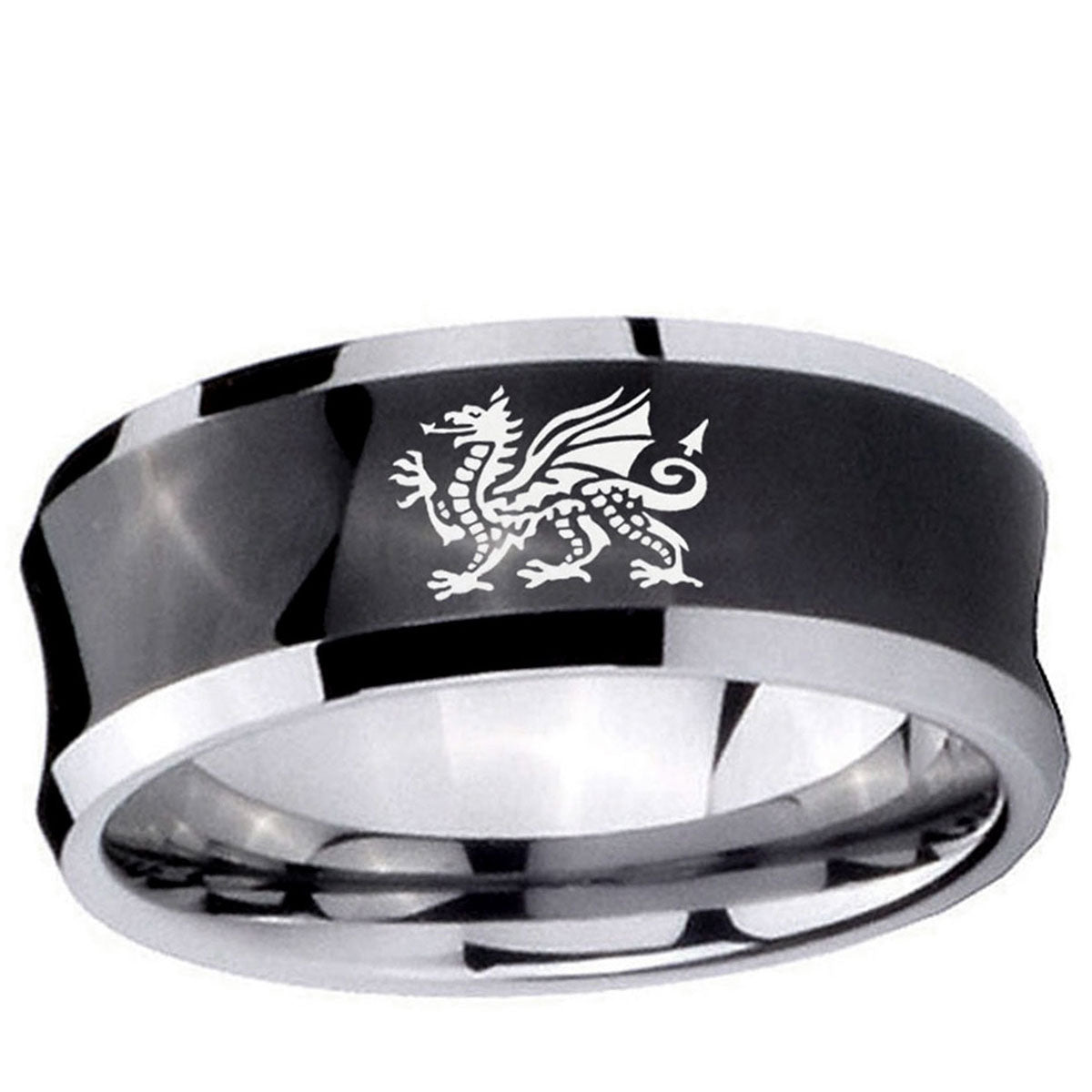 10mm Dragon Concave Black Tungsten Carbide Wedding Engagement Ring