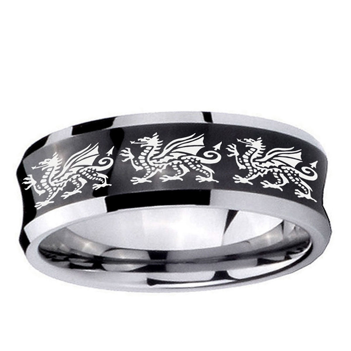 10mm Multiple Dragon Concave Black Tungsten Carbide Mens Promise Ring