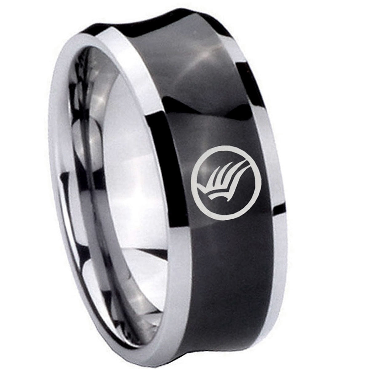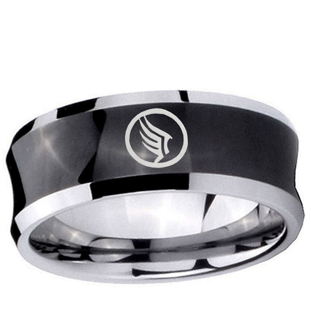 Intruding 5, 8mm Black Concave Mass Effect Two Tone Tungsten Carbide Laser Engraved Ring . Offer in both 5mm and 8mm band width black plated two tone finished from size 4 to 14