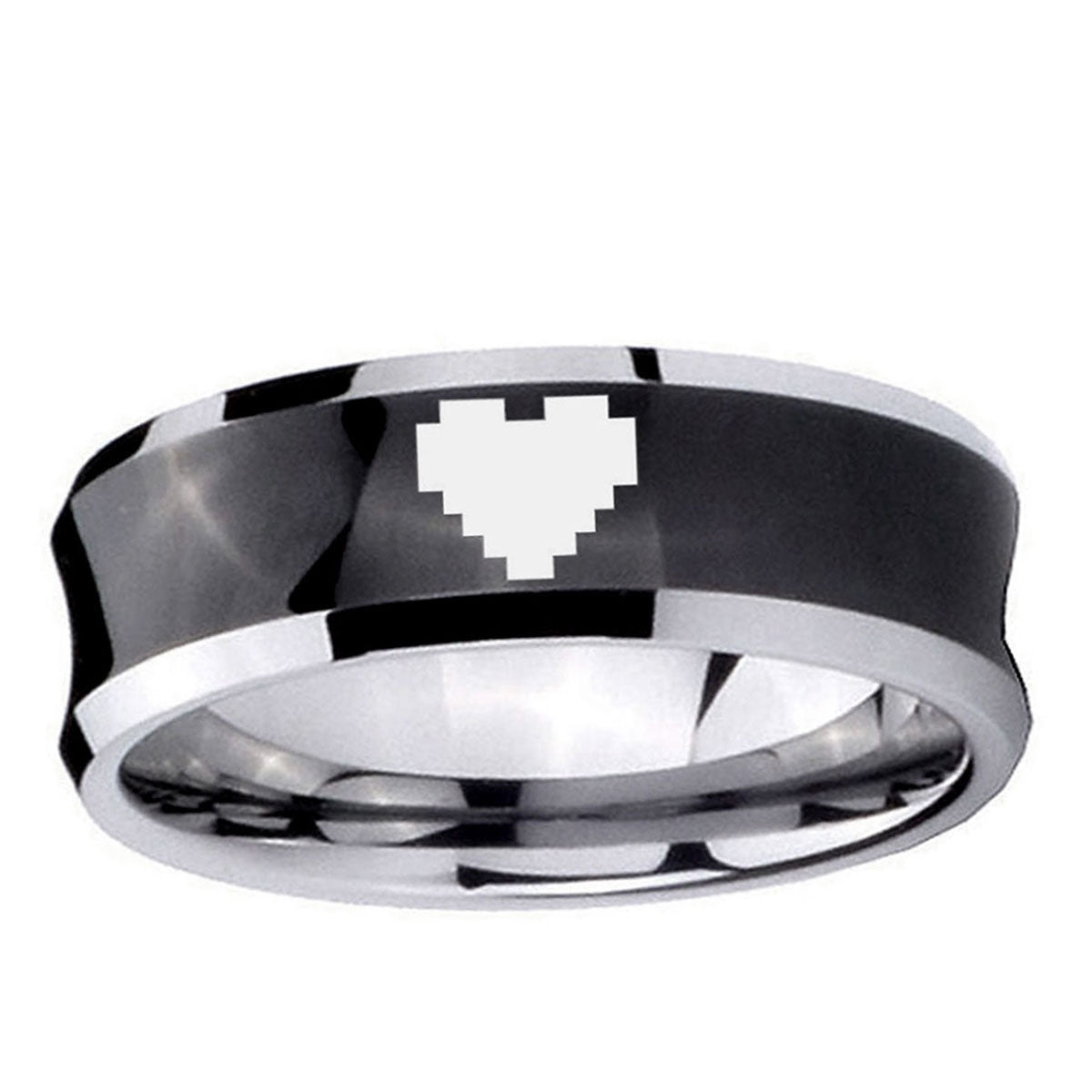 5, 8mm Black Concave Zelda Heart Two Tone Tungsten Carbide Laser Engraved Ring