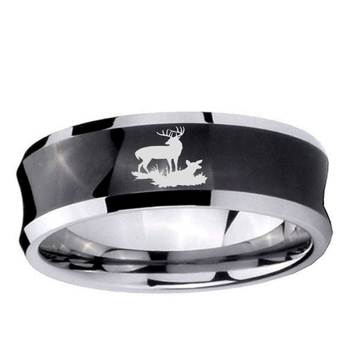 5, 8mm Deer Hunting Concave Black Tungsten Carbide Engraved Ring
