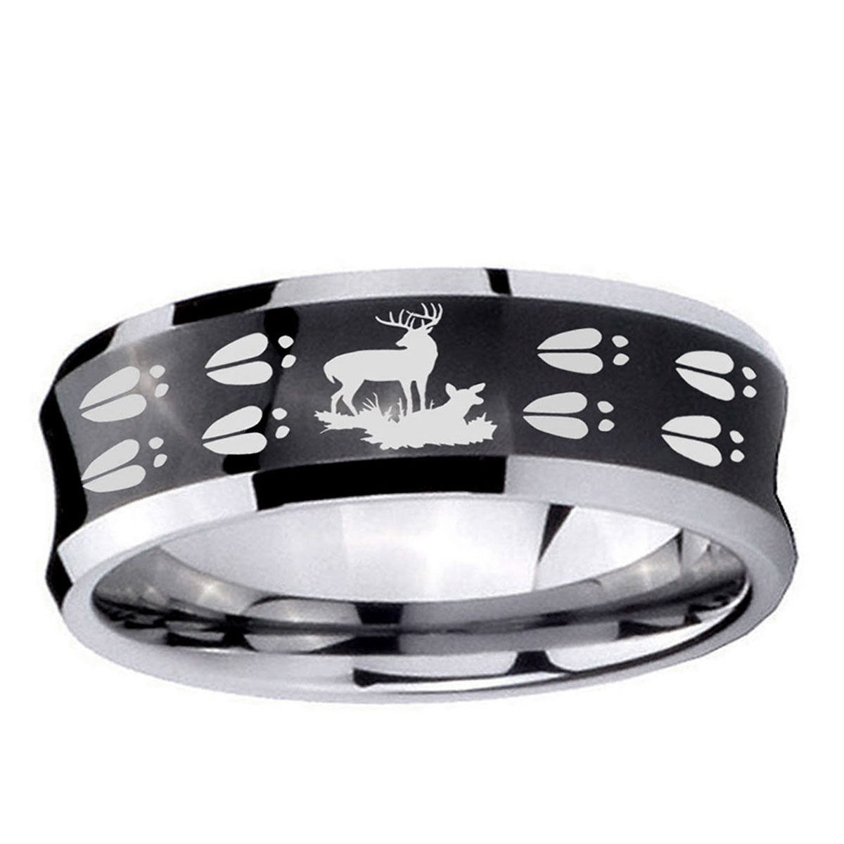 5, 8mm Deer Hunting Tracks Concave Black Tungsten Carbide Mens Anniversary Ring
